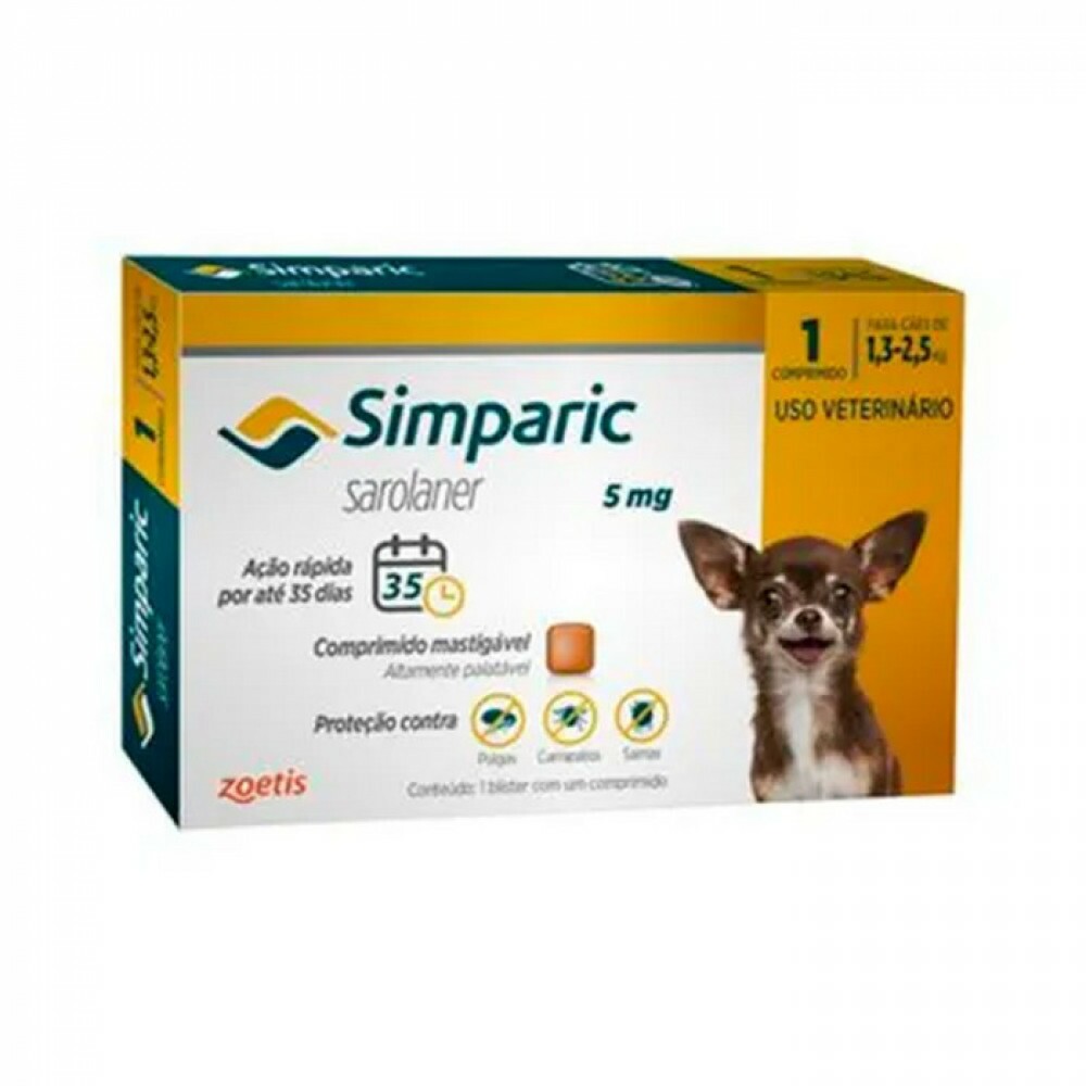 Tags: Simparic, 5mg, comprimido, antipulgas, carrapatos, cães, peso 1, 3 a 2, 5kg, proteção parasitas, medicamento veterinário, saúde animal, tratamento pulgas e carrapatos.