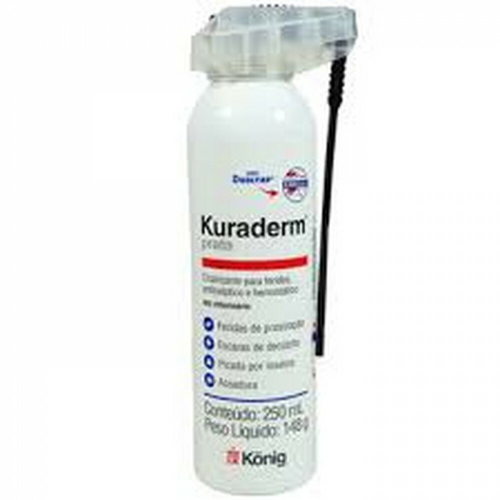 Além disso, o Kuraderm não apenas atua como cicatrizante, mas também oferece uma potente ação antibiótica e bactericida, tornando-o ideal para diferentes tipos de feridas, escaras de decúbito, queimaduras, pós-cirúrgicos e picadas de insetos. O uso tópico do produto, em formato de aerossol, torna sua aplicação prática e eficiente, alcançando até os locais mais difíceis.