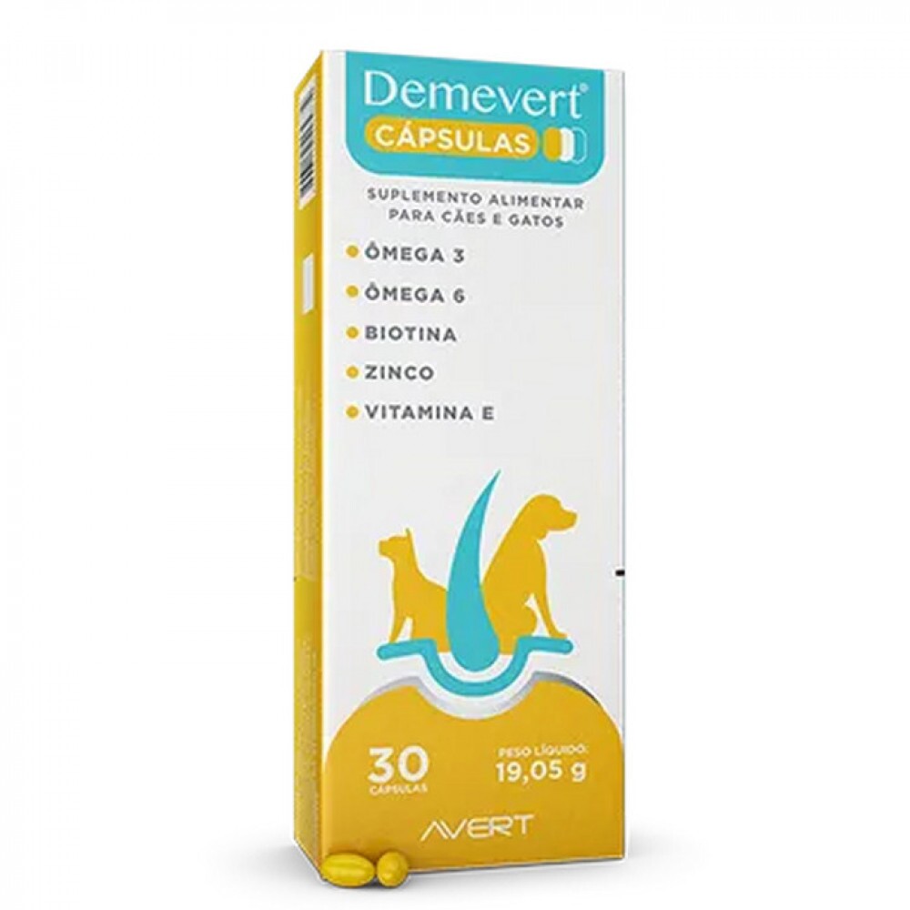 Tags: Pet, suplemento, cápsulas, cães, gatos, saúde animal, Demevert, vitaminas, mineralização, 30 cápsulas, cuidado animal, suplemento alimentar, bem-estar, nutrição animal, produto pet.
