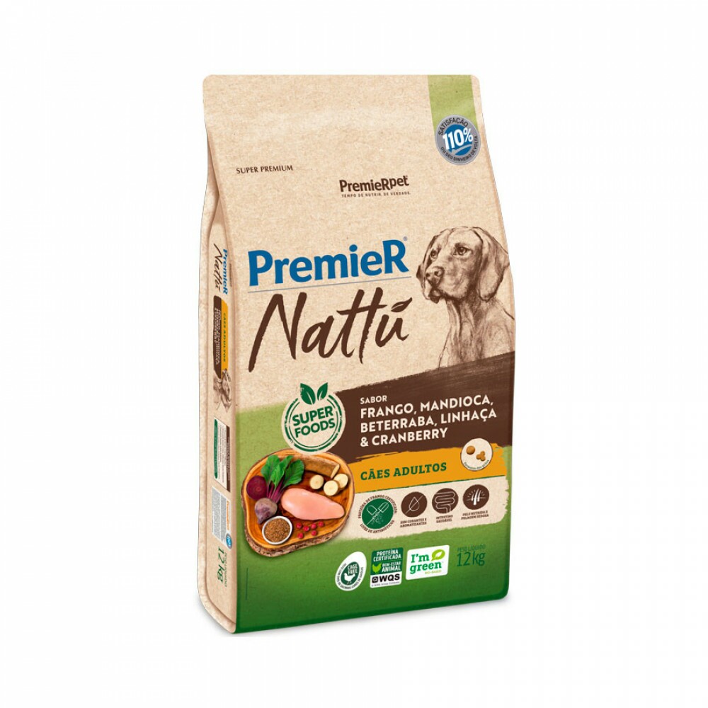 Tags: rações para cães, comida para cães, cães adultos, alimentação saudável, mandioca, Premier Nattu, nutrição canina, ração 12 kg, ração premium, pet shop, alimentação natural para cães, produtos para cachorro