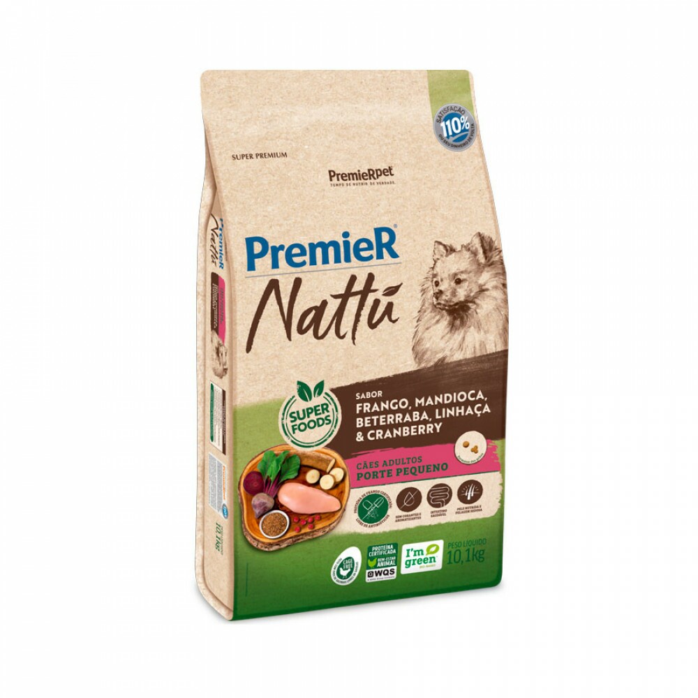Tags: Ração para cães, Premier Nattu, cães adultos, raças pequenas, sabor mandioca, 10, 1 kg, alimentação canina, comida para pets, nutrição para cães, ração premium.