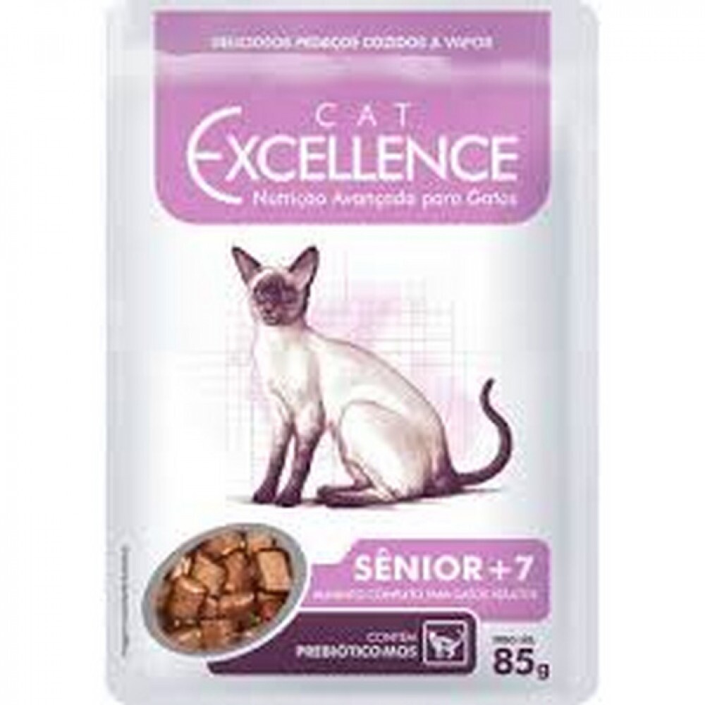 Tags: Ração úmida, Cat Excellence, sachê, gatos sênior, +7 anos, 85g, alimentação para gatos, nutrição felina, saúde para gatos idosos, comida para gatos.